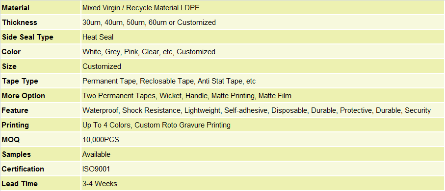 Our Virgin/Recycle Material Mailer Bag is made by post customer used recycle material and virgin material. Sturdy but lightweight bag is perfectly designed for postal shipping at cheaper price and better quality. With a self-sealing folding lip, they can be easily secured without additional tape. Shipping labels can also be directly affixed onto the bag firmly.